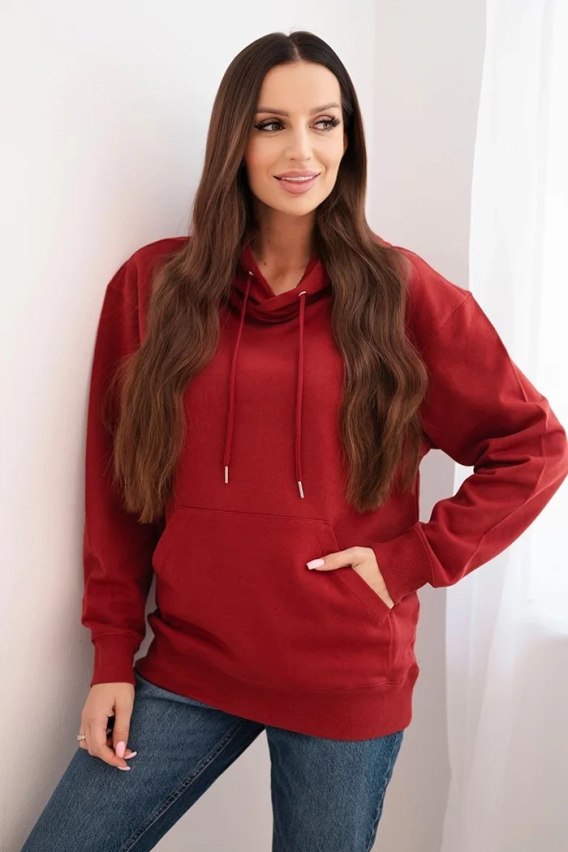 • Bluza damska pętelkowa bawełniana z kapturem i kieszenią kangurką bordowa