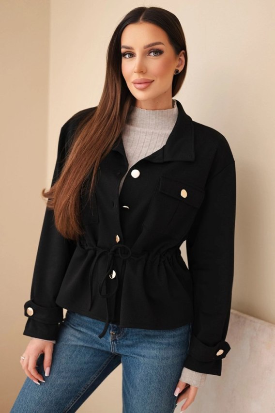 Bluza damska rozpinana masełkowa z troczkiem i kieszeniami czarna