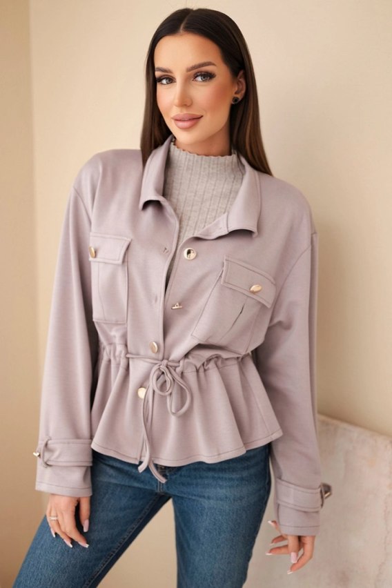 Bluza damska rozpinana masełkowa z troczkiem i kieszeniami fango