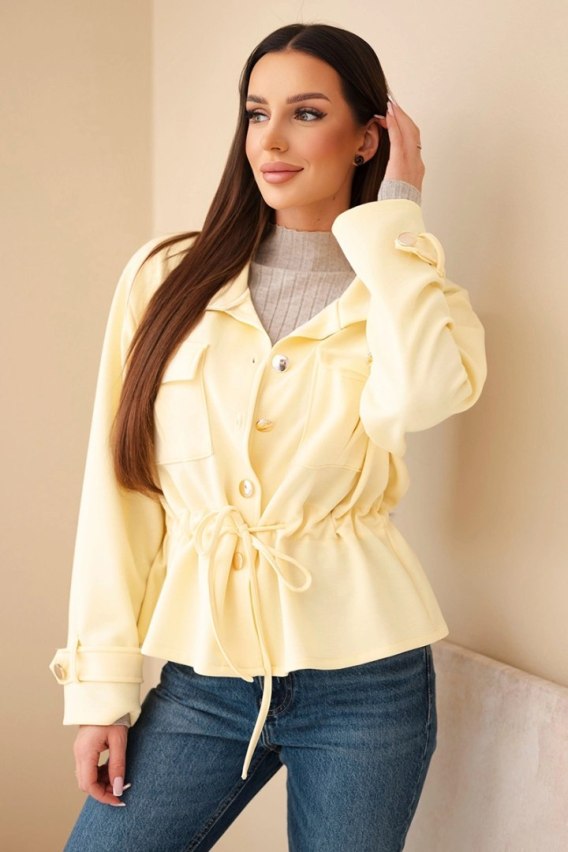Bluza damska rozpinana masełkowa z troczkiem i kieszeniami żółta