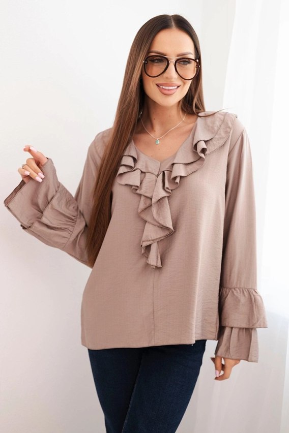 • Bluzka damska z wiskozy z falbanami i długim rękawem fango