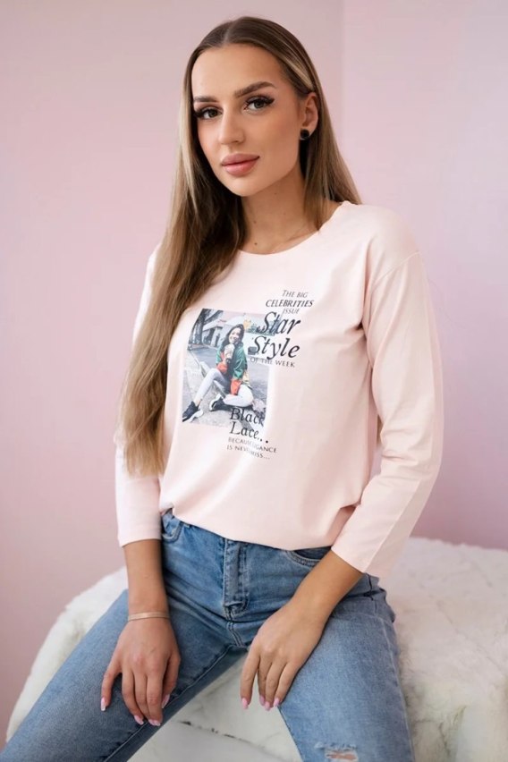 Bluzka z nadrukiem Star Style pudrowy róż