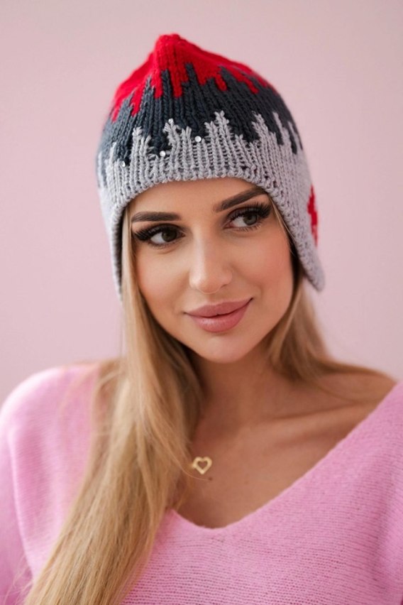 Czapka damska Nikol K405 czerwony+grafitowy+ciemny szary