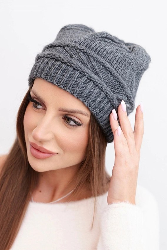 Czapka damska zimowa z wełny i z przeplatanym wzorem K428 grafitowa