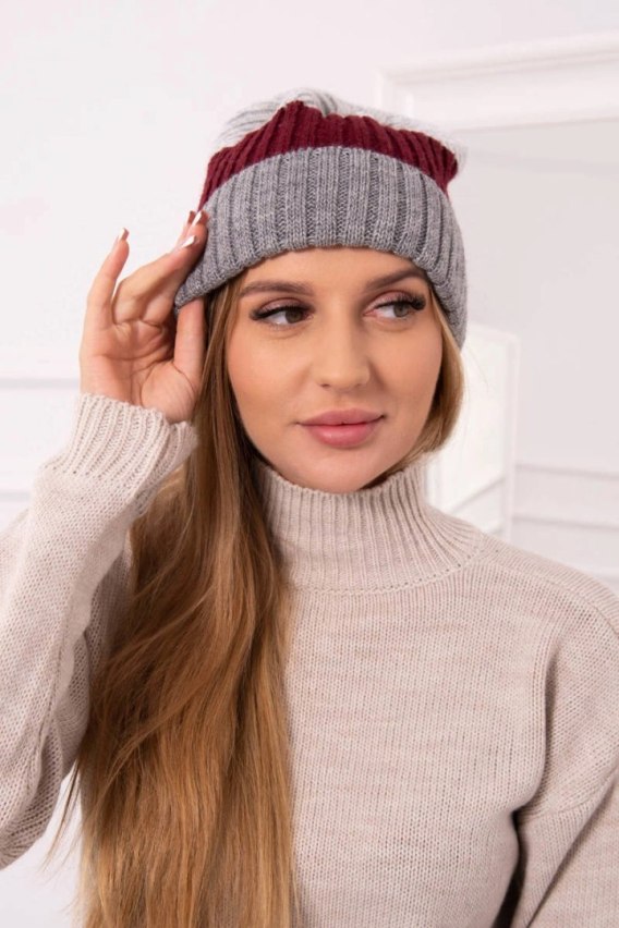 Czapka z polarem Bojana K265 ciemny szary+bordowy+jasny szary