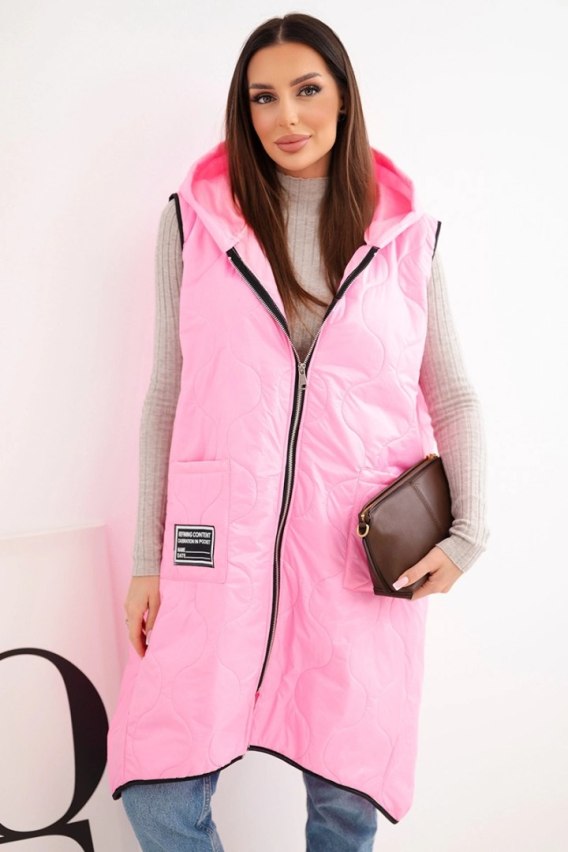 Kamizelka damska pikowana Plus Size z kapturem zapinana na zamek cukierkowy róż