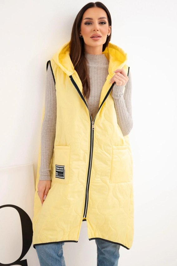 Kamizelka damska pikowana Plus Size z kapturem zapinana na zamek żółta