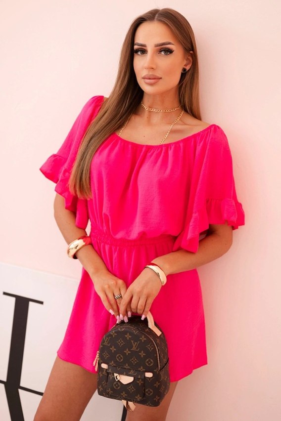 • Kombinezon damski hiszpanka z falbankami i gumką w talii fuksja