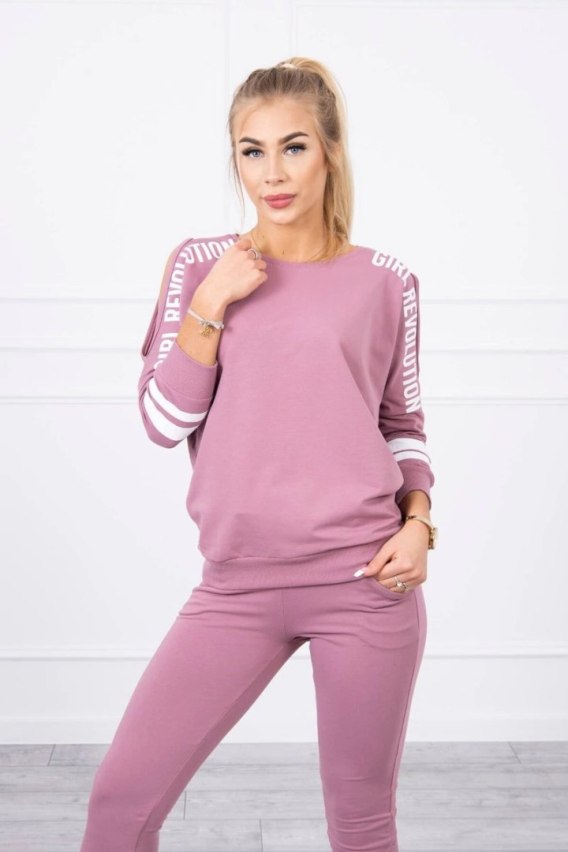 Prezentujemy Państwu komplet bluzy i spodni z napisem Girl Revolution. Komplet wykonany jest z wysokiej jakości materiału. Rozmiar jest uniwersalny i będzie odpowiedni dla Pań w rozmiarze S, M lub L.