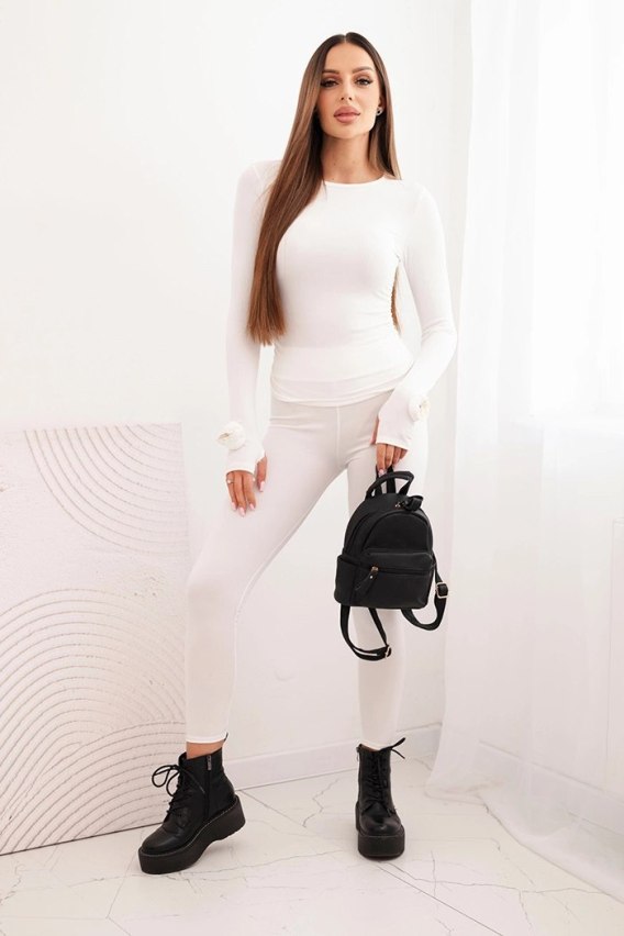 • Komplet damska z prążkowanej wiskozy z długim rękawem i legginsami ecru