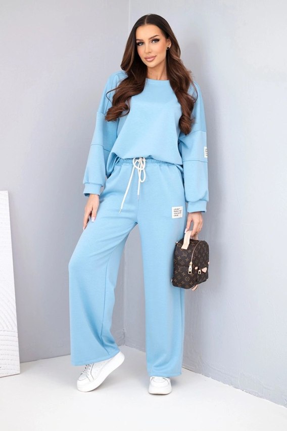 Delikatny, lekko elastyczny materiał z przewagą wiskozy sprawia, że komplet świetnie układa się na sylwetce i zapewnia komfort noszenia przez cały dzień. Bluza ma klasyczny krój z okrągłym dekoltem, a spodnie posiadają elastyczny pas z troczkiem oraz luźne nogawki, które zapewniają swobodę ruchu.