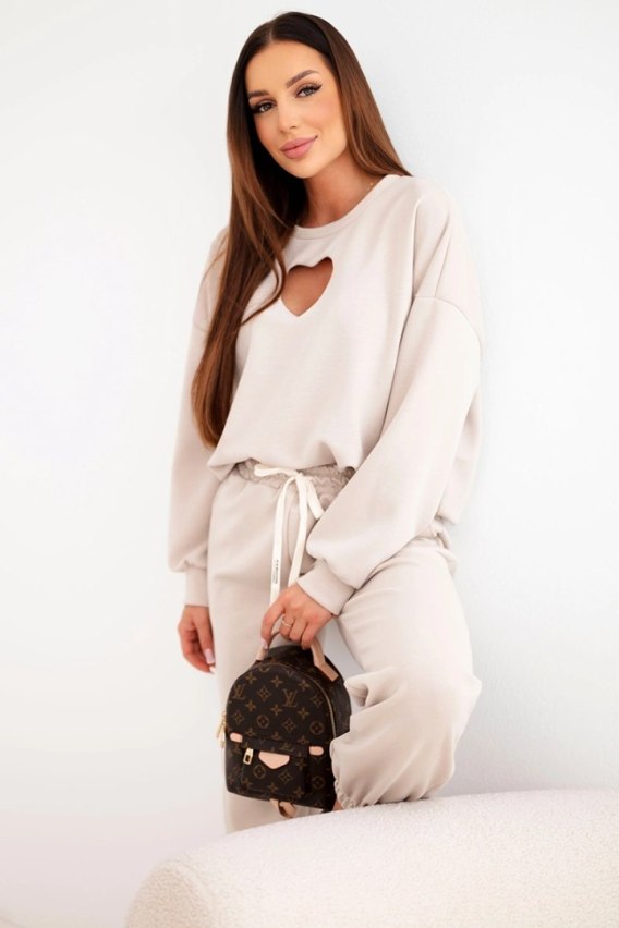 Komplet damski masełko z wycięciem w kształcie serca beżowy