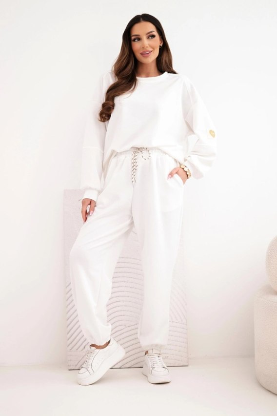 Komplet damski masełkowy z luźną bluzą i spodniami z napisem LOVE biały