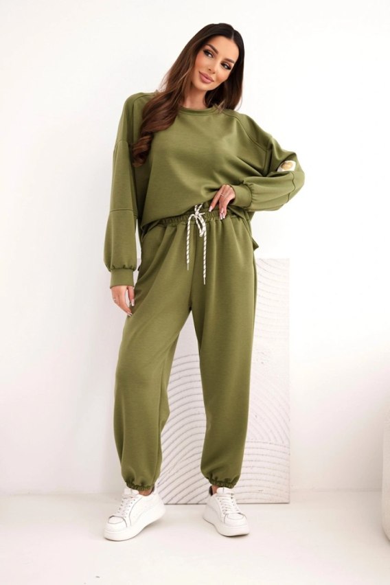 Komplet damski masełkowy z luźną bluzą i spodniami z napisem LOVE oliwkowy