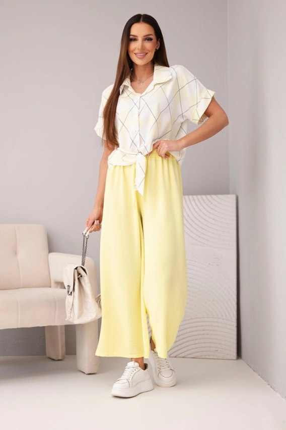 Komplet damski wiskozowy koszula z wiązaniem i spodnie z gumką żółty