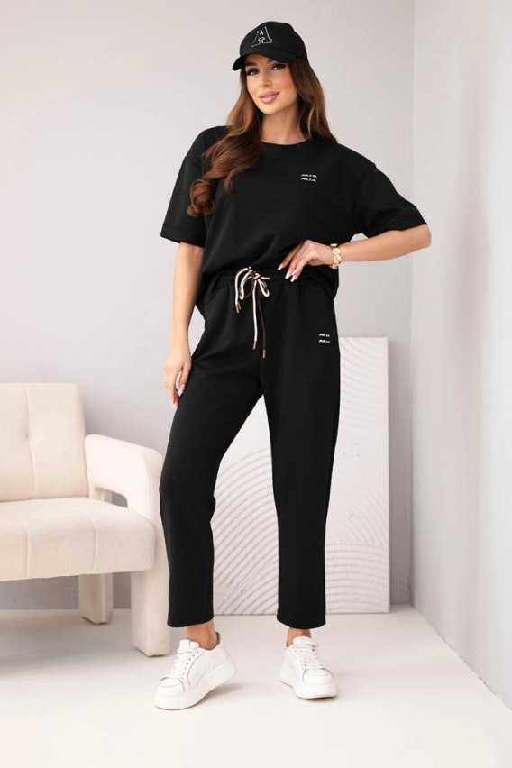Komplet damski wiskozowy masełko z krótkim rękawem i spodniami z podwijaną nogawką czarny