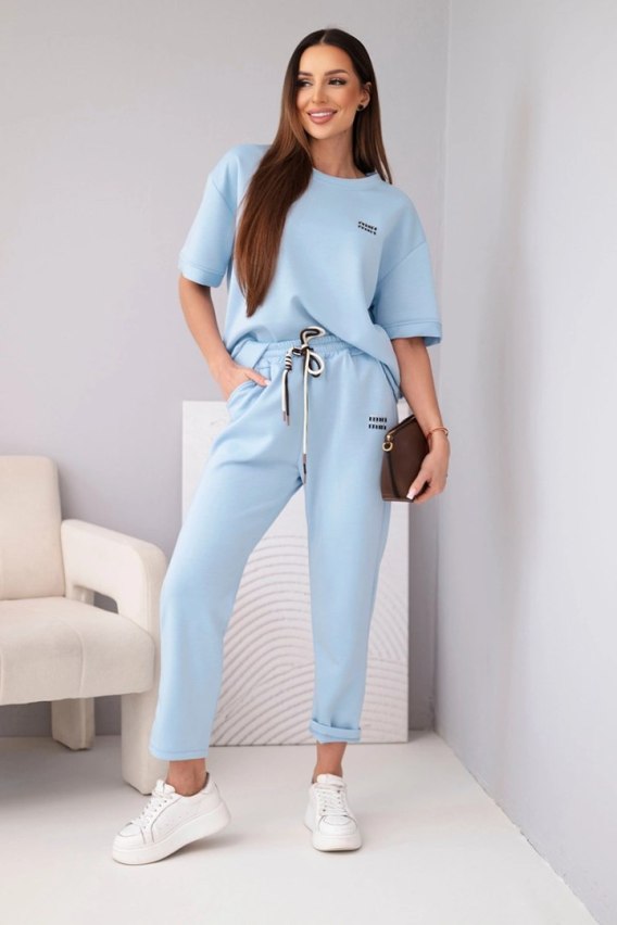 Komplet damski wiskozowy masełko z krótkim rękawem i spodniami z podwijaną nogawką niebieski