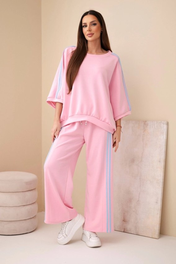 Komplet damski wiskozowy masełko z szeroką nogawką i luźną bluzą jasno różowy