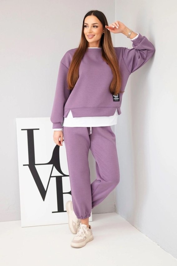 Komplet damski z masełkowy z luźną bluzą i spodniami dresowymi fioletowy