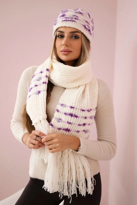 • Komplet damski z szalem Anika K304 ecru+fioletowy