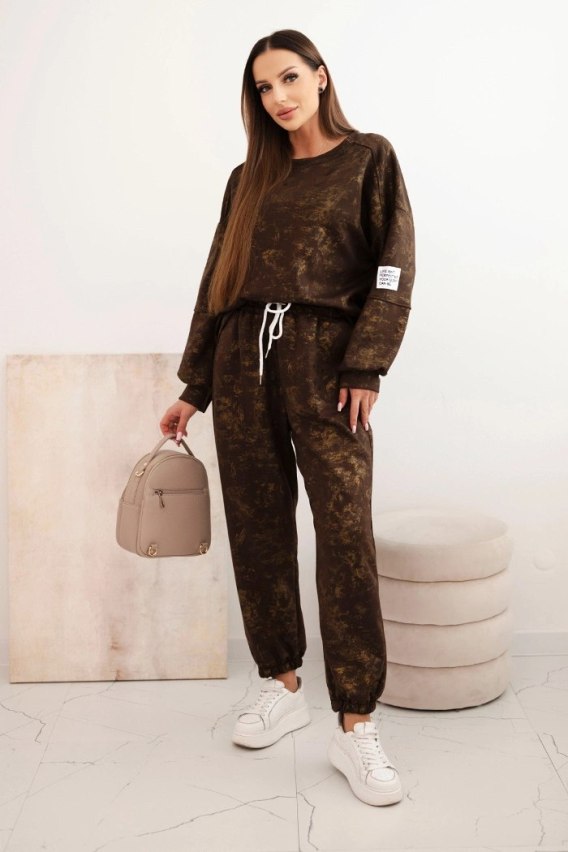 Komplet dresowy damski oversize z wiskozy z wydłużoną bluzą i efektem sprania brązowy