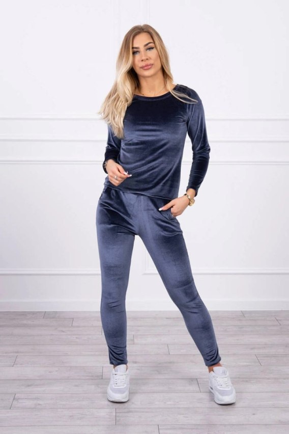 Komplet welurowy z marszczeniem z tyłu grafitowy