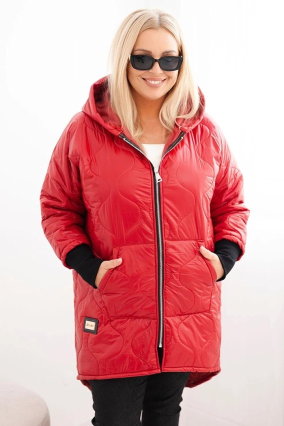 Kurtka damska Plus Size pikowana z kapturem czerwona
