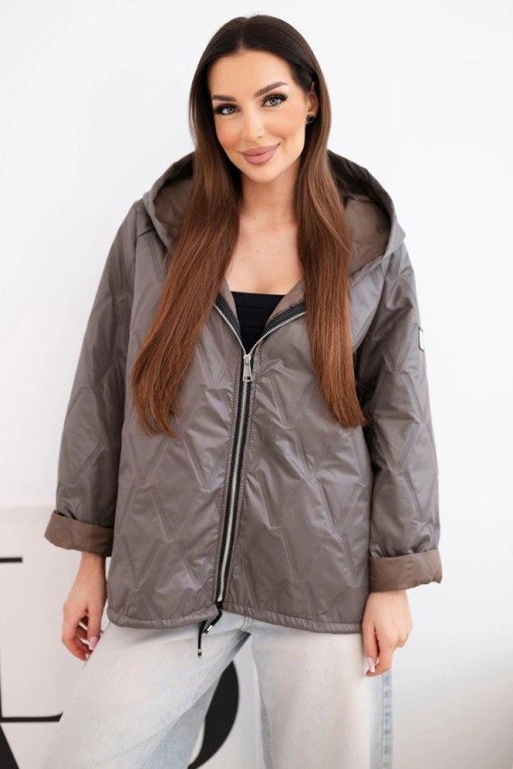 Kurtka damska wiosenna pikowana z kapturem i zamkiem fango