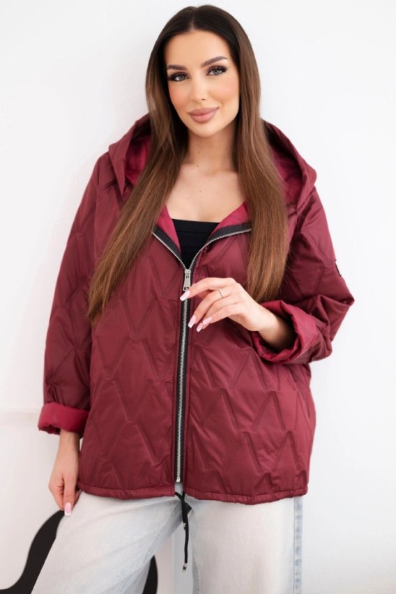 • Kurtka damska wiosenna pikowana z kapturem i zamkiem śliwkowa