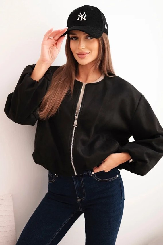 • Kurtka damska z zamkiem i bufiastym rękawem czarna