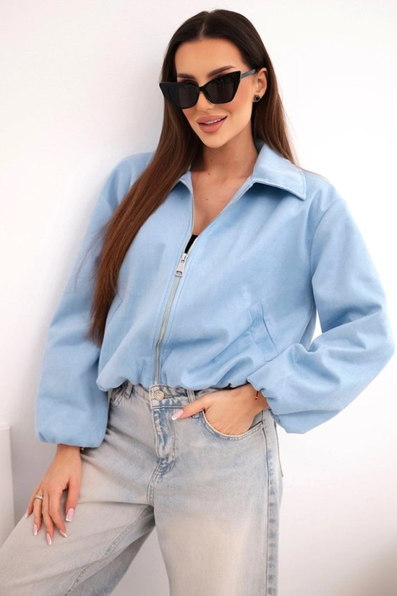 • Kurtka damska z zamkiem i bufiastym rękawem niebieska