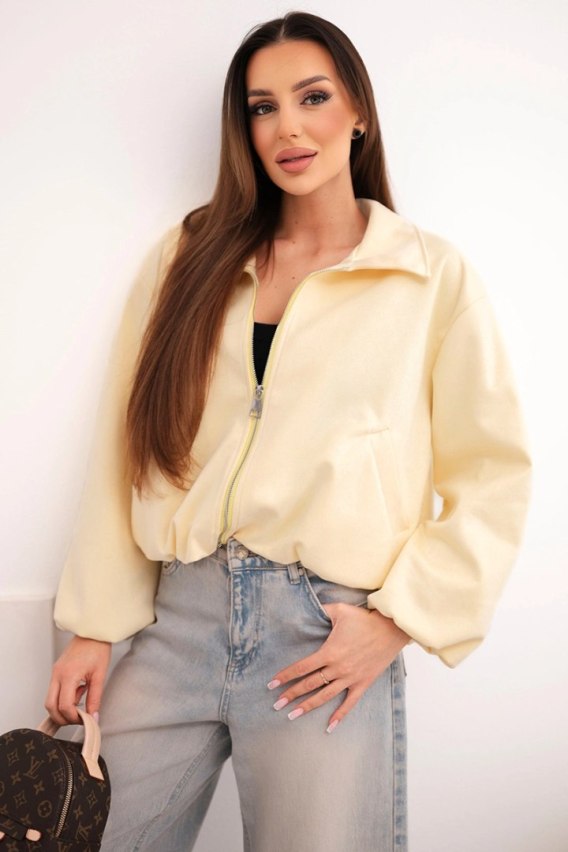 • Kurtka damska z zamkiem i bufiastym rękawem żółta