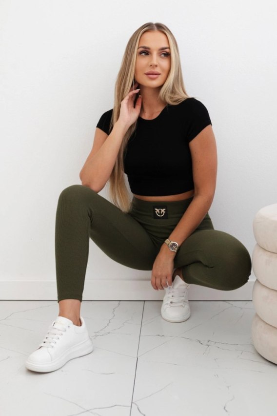 Legginsy w prążek z wysokim stanem khaki