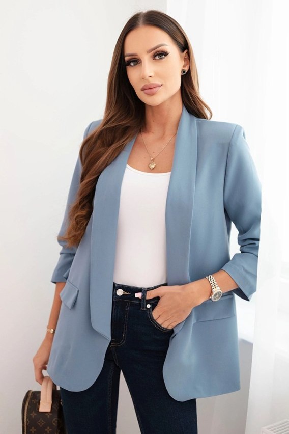 Elegancka marynarka damska w klasycznym stylu to idealny wybór dla kobiet, które cenią ponadczasową modę i komfort noszenia. Model bez zapięcia, z prostym, swobodnym krojem i podszewką, doskonale układa się na sylwetce, dodając lekkości każdej stylizacji. Krótszy rękaw oraz długość sięgająca bioder czynią ją idealną zarówno do pracy, jak i na co dzień.