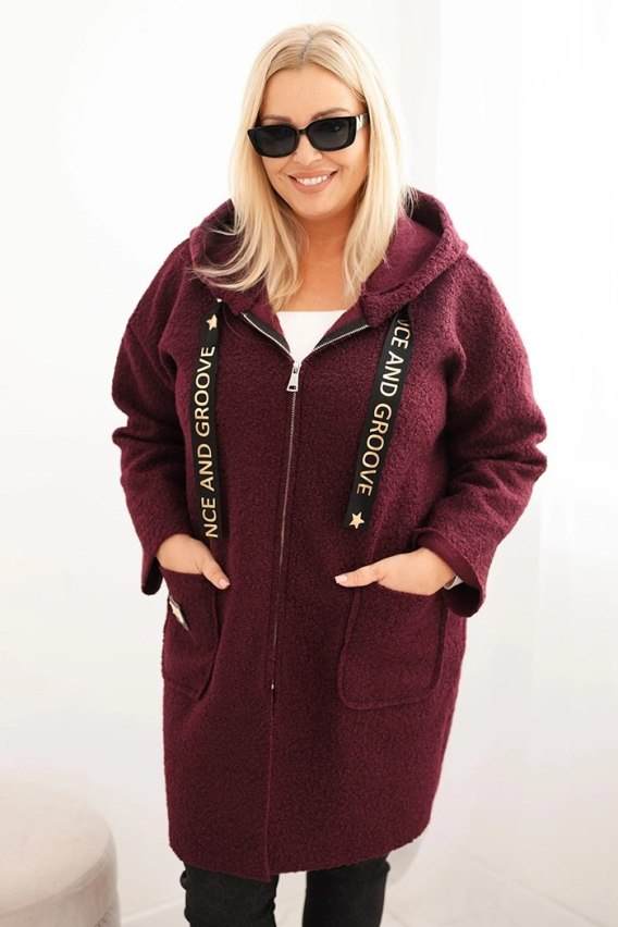 Płaszcz damski Plus Size ze sztucznego baranka z kapturem i kieszeniami śliwkowy