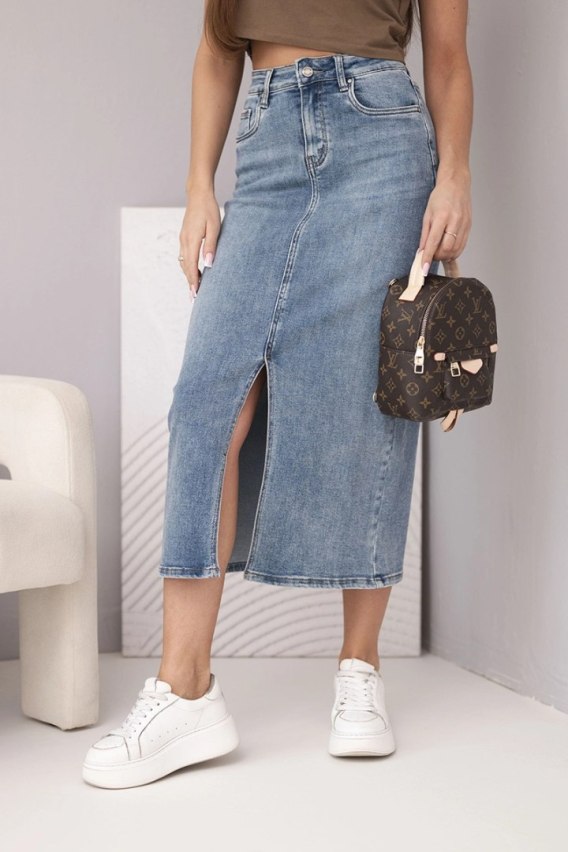 Spódnica jeansowa damska midi z rozcięciem z przodu jeansowe