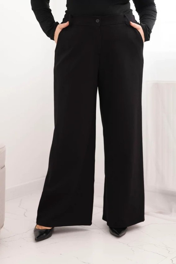 Spodnie damskie Plus Size z szeroką nogawką i elastycznym pasem czarne