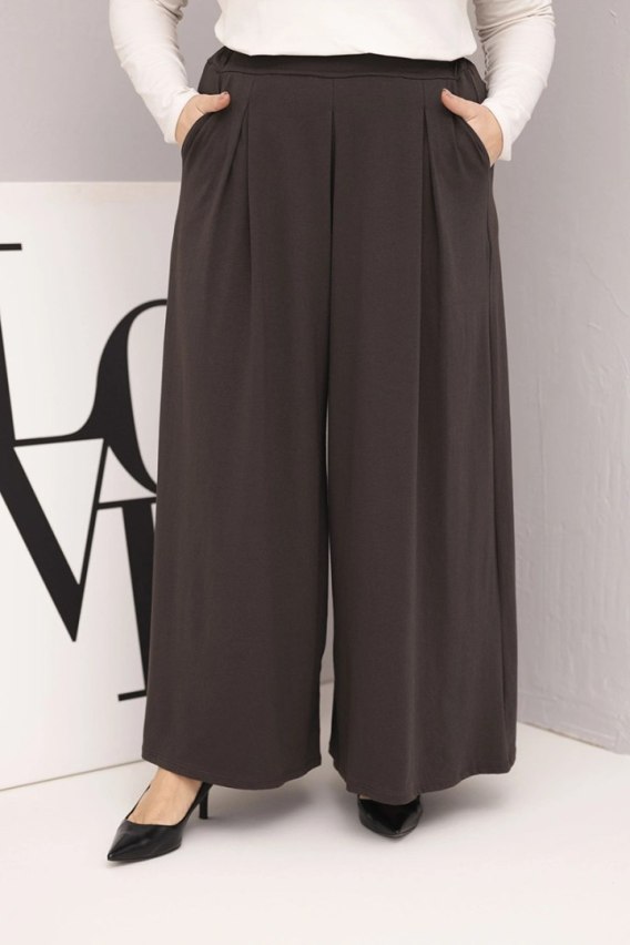 • Spodnie damskie bawełniane Plus Size o szerokiej nogawce i luźnym kroju brązowe