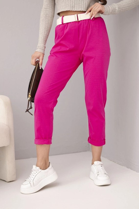 Spodnie damskie bawełniane z paskiem i podwijaną nogawką fuksja