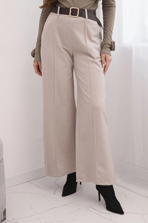 Spodnie damskie eleganckie z paskiem i szeroką nogawką beżowe