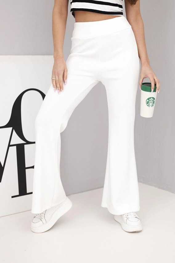 Spodnie damskie masełko z rozszerzaną nogawką ecru
