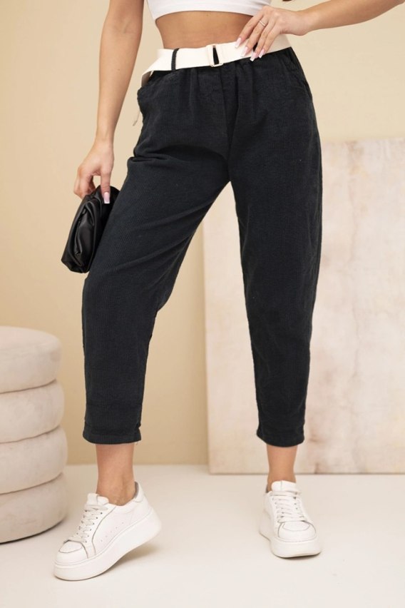 Spodnie damskie sztruksowe z paskiem czarne