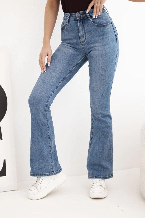 Spodnie damskie z rozszerzaną nogawką z wysokim stanem jeansowe