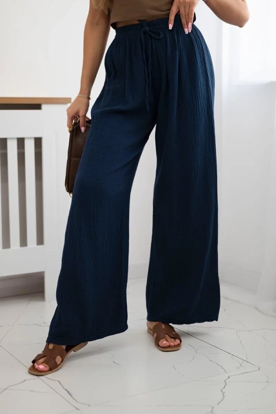 Odkryj wyjątkowe spodnie wykonane z delikatnego, przewiewnego muślinu, które zapewniają niespotykany komfort noszenia nawet w najcieplejsze dni. Ich szeroka nogawka nadaje całości modnego, nowoczesnego charakteru, optycznie wydłużając sylwetkę i dodając stylizacji lekkości. Idealne na co dzień, do pracy czy na wyjątkowe okazje - te spodnie doskonale komponują się z różnorodnymi topami, od minimalistycznych t-shirtów, przez eleganckie bluzki, aż po swetry. Postaw na klasyczny, ale jednocześnie wyrafinowany design, który pozwoli Ci cieszyć się zarówno komfortem, jak i niebanalnym stylem. Rozmiar jest uniwersalny i pasuje dla kobiet noszących rozmiar S, M lub L.