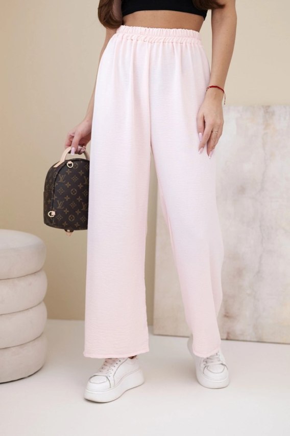 Spodnie z szeroką nogawką jasny pudrowy róż