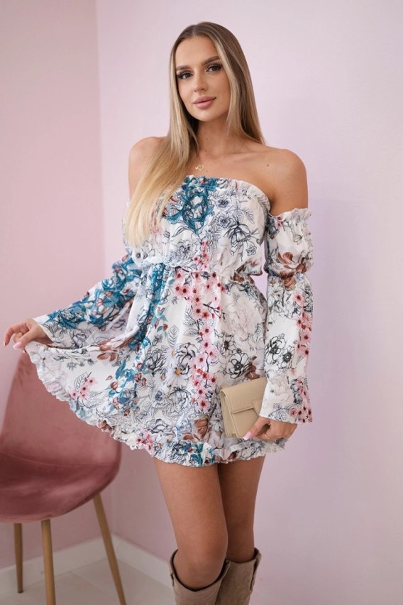 Prezentujemy Państwu modną sukienkę. Sukienka z odkrytymi ramionami, hiszpanka. Modne falbanki. Gumka wszyta w dekolcie oraz pasie. Sukienka wykonana jest z materiału wysokiej jakości. Rozmiar jest uniwersalny i będzie odpowiedni dla Pań noszących rozmiar S, M lub L.