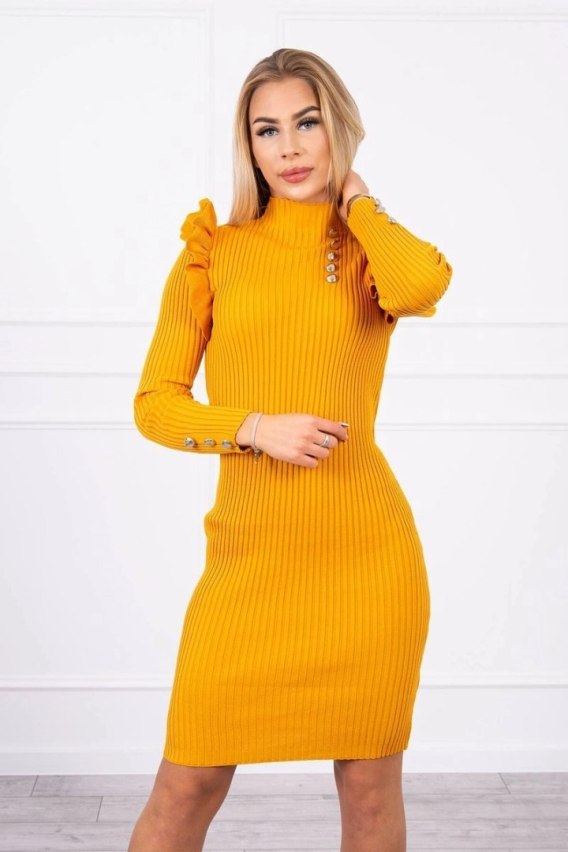 Sukienka swetrowa dopasowana z guzikami musztardowy