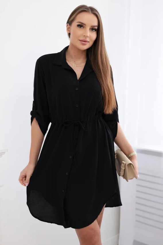 Sukienka z zapięciem na guziki i wiązaniem w talii czarna