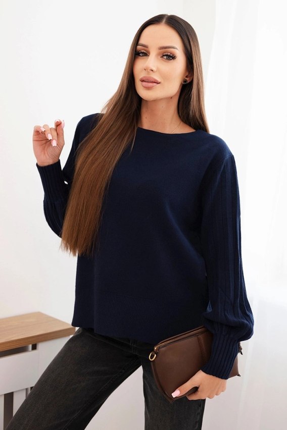 • Sweter damski wiskozowy z długim rękawem i rozcięciem po bokach granatowy