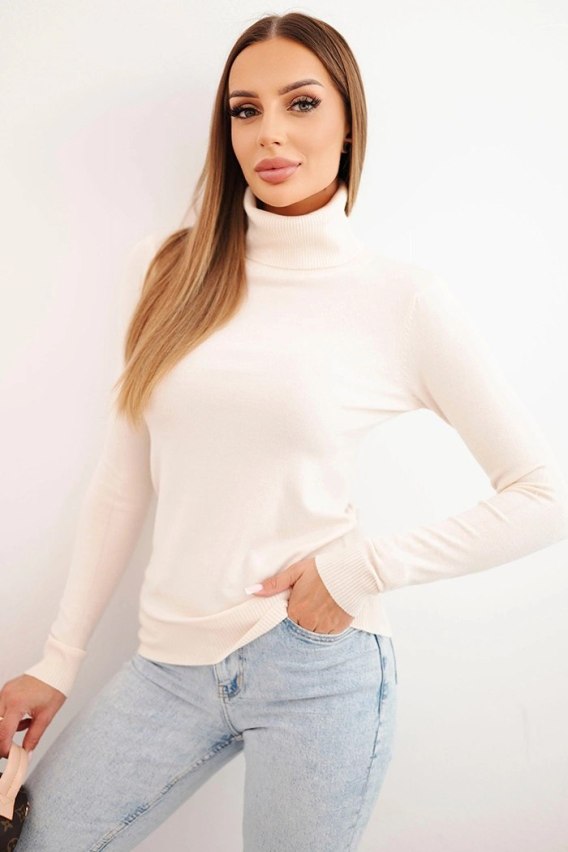 • Sweter damski z wiskozy z golfem i długim rękawem beżowy